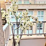 Chabos Plaza Espana - Charming Flats consta de un balcón y un vestidor con sofá y escritorio, y comodidades modernas como TV de pantalla plana con canales vía satélite y televisión con múltiples canales. El establecimiento cuenta con 1 dormitorio. Los huéspedes pueden disfrutar de 1 cuarto de baño con ducha, bañera y una ducha. Además, hay secador de pelo, artículos de tocador para huéspedes y toallas.